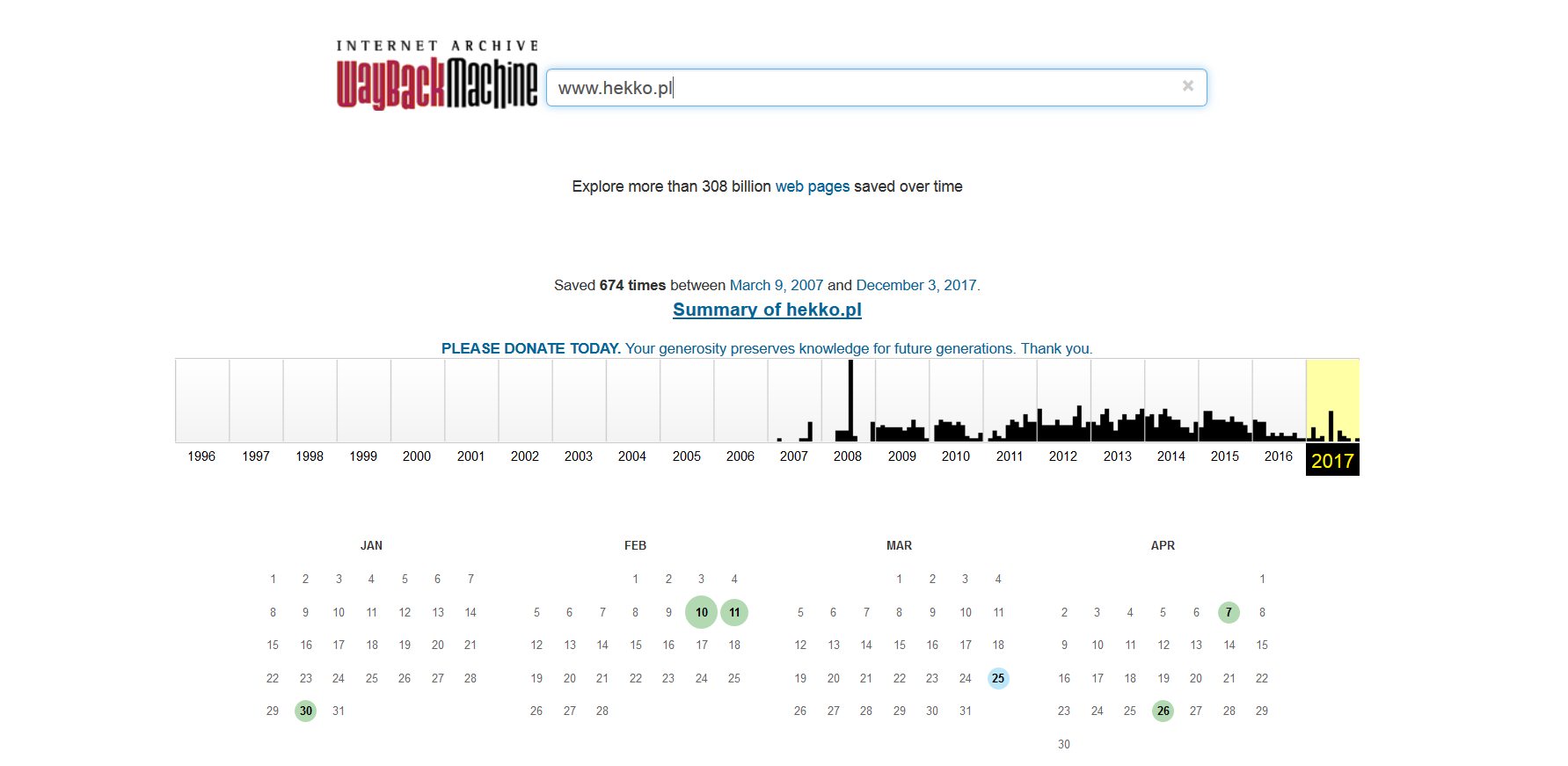 Co w sytuacji, gdy nie ma backupu – nie wykonywała go ani firma hostingowa, ani właściciel witryny? Wtedy warto zainteresować się darmowym serwisem internetowym web.archive.org, który zgrywa kopie stron internetowych i umożliwia zobaczenie, jak wyglądały danego dnia. Oczywiście nie wszystkie witryny są przez serwis archiwizowane i usługa nie jest wykonywana każdego dnia. Zawsze jest jednak szansa, że znajdzie się tam kopię własnej strony, umożliwiającą jej odtworzenie – np. skopiowanie tekstów, grafik i innych elementów. Nie jest to pełny backup wszystkich plików źródłowych strony, ale w wielu wypadkach pomoże uratować sytuację i ułatwić naprawę po „katastrofie”.