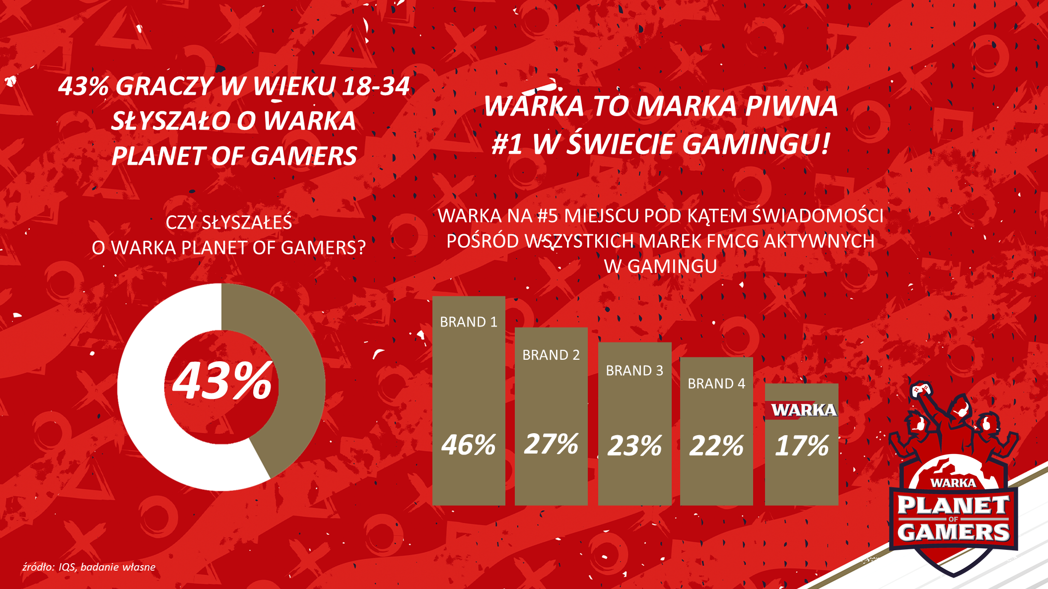 Kluczowe w dotarciu do młodych dorosłych konsumentów jest pojawienie się w ich świecie i granie zgodnie z ich regułami. Wejście do gamingu przyniosło Warce świetne rezultaty. 43% fanów gamingu usłyszało o platformie Warka Planet of Gamers, z czego aż 50% z grupy 18-24. Co ważne, w tej chwili oceniana jest jako marka piwna najbardziej kojarzona z gamingiem oraz znajduje się na piątym miejscu w całym segmencie FMCG.