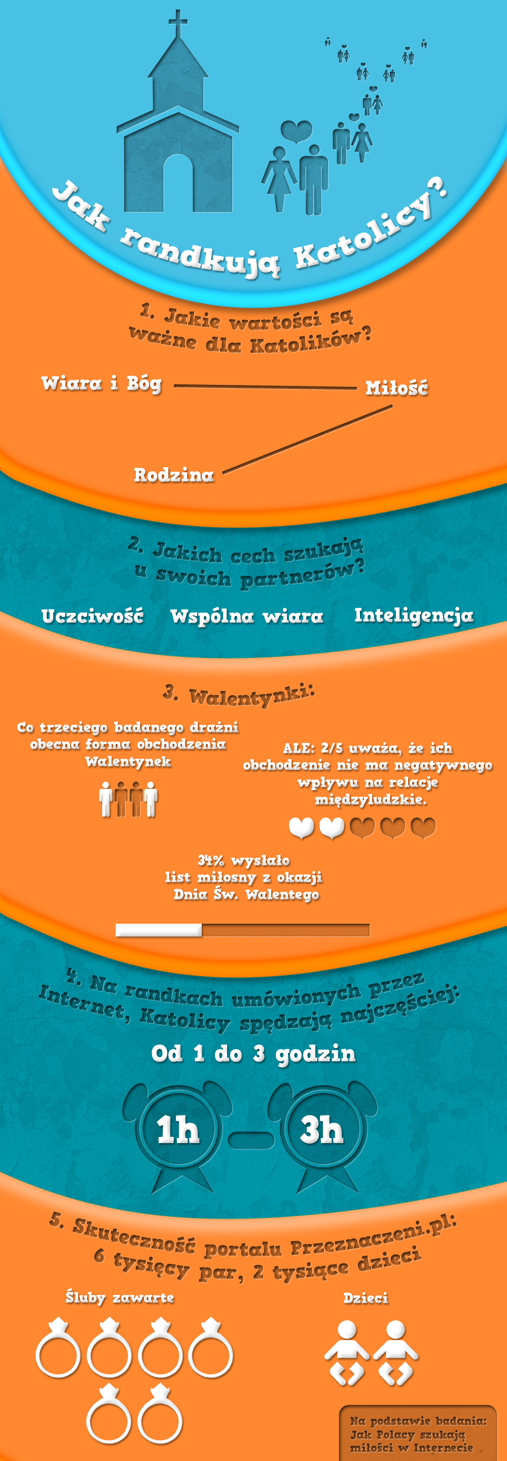 Z badania zrealizowanego przez firmę World Dating Company wynika, że dla Polaków miłość to przede wszystkim spotkanie z drugim człowiekiem, bliskość i zrozumienie, które tworzy się w relacji między dwoma osobami. Dlatego ponad 50% internautów biorących udział w badaniach przeprowadzonych na trzech portalach randkowych, szuka przede wszystkim osoby podobnej do siebie. Tak więc katolicy, przywiązujący wagę do wyznawanych zasad, rejestrują się na portalu Przeznaczeni.pl z nadzieją znalezienia męża lub żony.