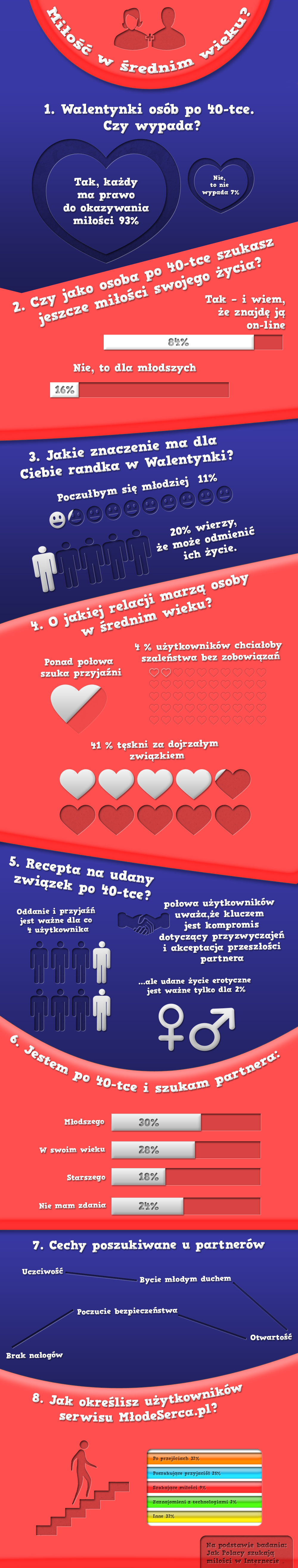 Polacy po czterdziestym roku życia korzystający z portalu MlodeSerca.pl również szukają miłości, gdyż jak wiadomo na nią nigdy nie jest za późno, mają jednak trochę więcej dystansu – cenią sobie także znalezienie przyjaźni czy po prostu dobrego towarzystwa.