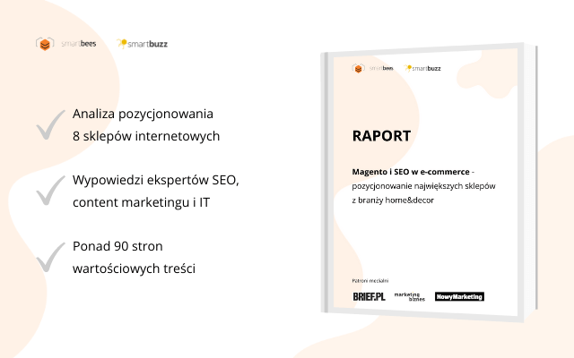 Ciekawość tego, jak czołowe sklepy z tej branży wykorzystują potencjał działań pozycjonerskich, była głównym sygnałem do powstania publikacji „Magento i SEO w e-commerce – pozycjonowanie największych sklepów z branży home&decor”. Jako eksperci technologii Magento, specjaliści Smartbees i Smartbuzz wzięli na tapet osiem sklepów internetowych z największym ruchem organicznym zbudowanych właśnie na tym silniku e-commerce.