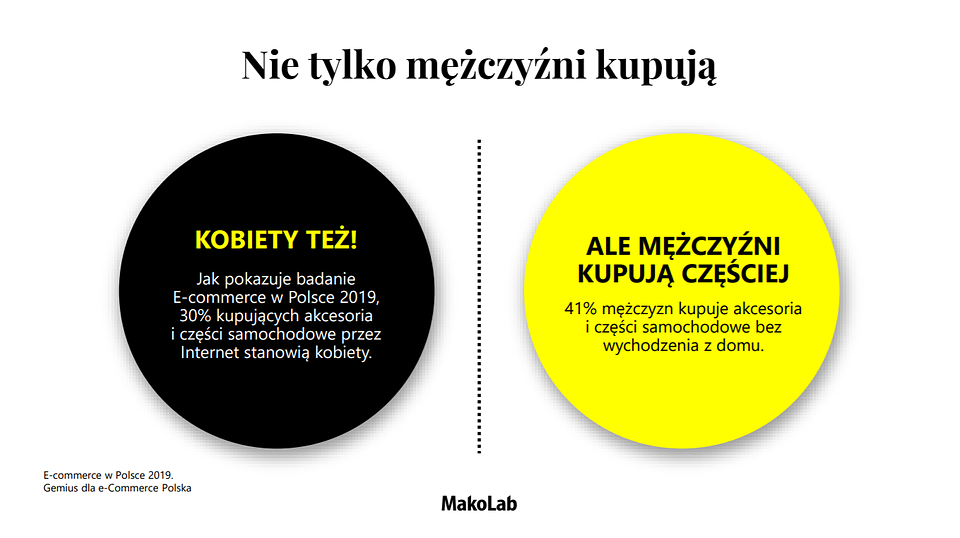 To od czego trzeba zacząć, to dobrze poznać użytkowników i stworzyć persony, dzięki czemu będzie można kierować do nich odpowiednie komunikaty. Kim jest użytkownik, który kupuje akcesoria i części samochodowe online? Według badania E-commerce w Polsce 2019, to mężczyzna w wieku 35-49 lat z wykształceniem średnim. Określa swoją sytuację finansową jako dobrą lub średnią. Najbardziej otwarte na zakupy online w przyszłości są osoby, które w momencie badania miały od 15 do 24 lat.