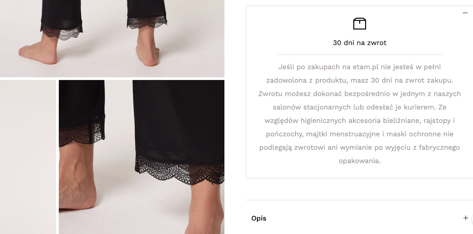 Zdj. Informacja o zwrotach na karcie produktu w etam.pl