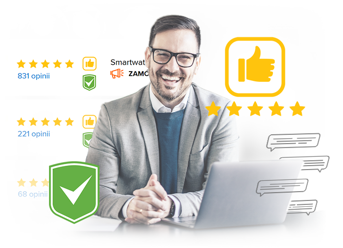 Dzięki obecności w programie można nie tylko brać udział w Rankingu Zaufanych Sklepów, ale również ubiegać się o oznaczenie „Solidny Sprzedawca”, które przyznawane jest sklepom o wzorowych wynikach satysfakcji wśród klientów. Prawdziwe opinie pozakupowe o Twoim sklepie i produktach zwiększają wiarygodność, ale są również rekomendacją dla innych kupujących.
