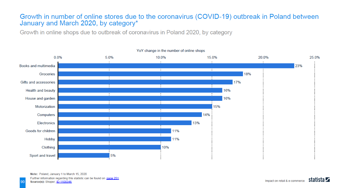 Natomiast zwracając uwagę na prognozy, dotyczące wzrostów przychodów w wybranych segmentach rynku, właśnie tutaj można zacząć szukać dla siebie niszy. W okresie epidemii koronawirusa powstaje wiele zupełnie nowych sklepów internetowych i marek, które być może nigdy nie pojawiłyby się na rynku, gdyby nie kryzys.