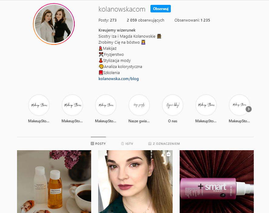 Bardzo dobrze radzi sobie w powyższym obszarze szczególnie branża beauty. Tutaj w czasie pandemii powstało wiele tutoriali, e- booków, a także kursów online. Utrzymanie komunikacji z potencjalnymi klientami w mediach społecznościowych, pomaga zachować firmę w dobrej kondycji. Przykłady takich działań znajdziemy na profilach prowadzonych przez siostry Kolanowskie z Poznania, specjalizujące się w wizażu. Dziewczyny podczas epidemii postawiły na lekcje Mackeup Stories.