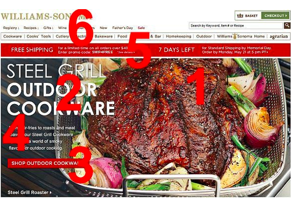 Poniżej znajdziesz kolejny przykład, zrzut ekranu strony internetowej Williams Sonoma. Ich celem jest sprzedaż sprzętu kuchennego do grillowania i gotowania na świeżym powietrzu.