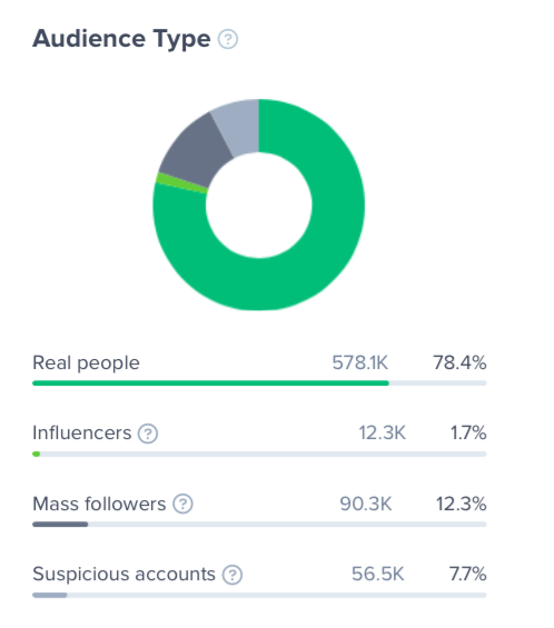 Jakość grupy odbiorców: zweryfikuj jaki % profili obserwatorów to realne konta, a ile z nich może być botami (na grafice poniżej oznaczone jako “suspicious accounts”).