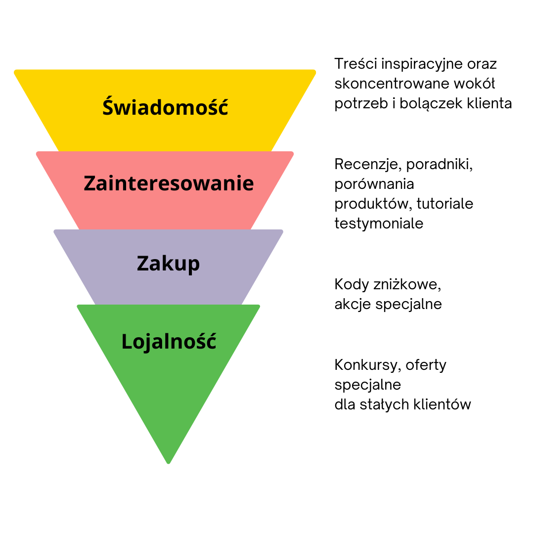 Rodzaje publikacji pożądane przez odbiorców na różnych etapach lejka zakupowego.