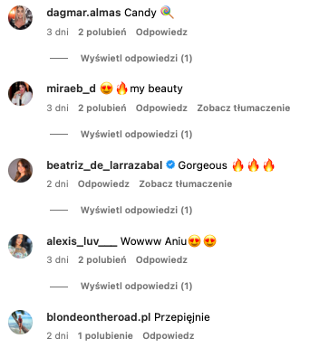 Zwróć uwagę, że większość komentarzy to pojedyncze słowa lub słowa obcojęzyczne pisane przez zagraniczne konta.