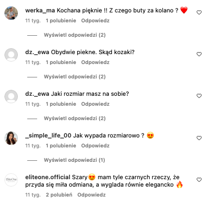 Zobacz to na poniższym przykładzie i porównaj jakość komentarzy na dwóch różnych kontach influencerek modowych – każda z nich na zdjęciu zaprezentowała podobną stylizację ubioru.