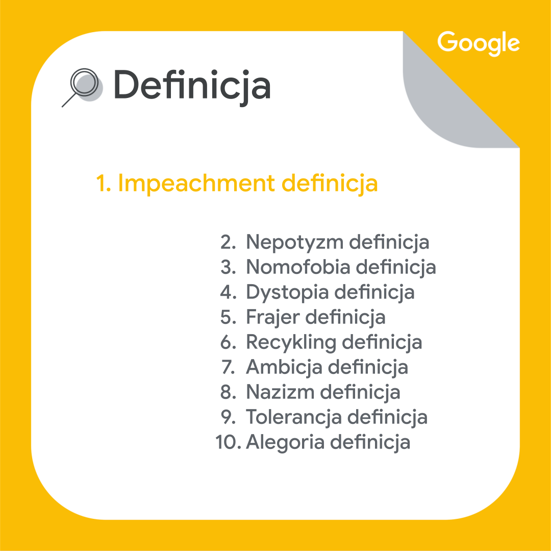 Poniżej pozostałe polskie listy, na których znaleźć można 10 kategorii pytań, listę definicji, a nawet listę rozterek gramatycznych Polaków i Polek.