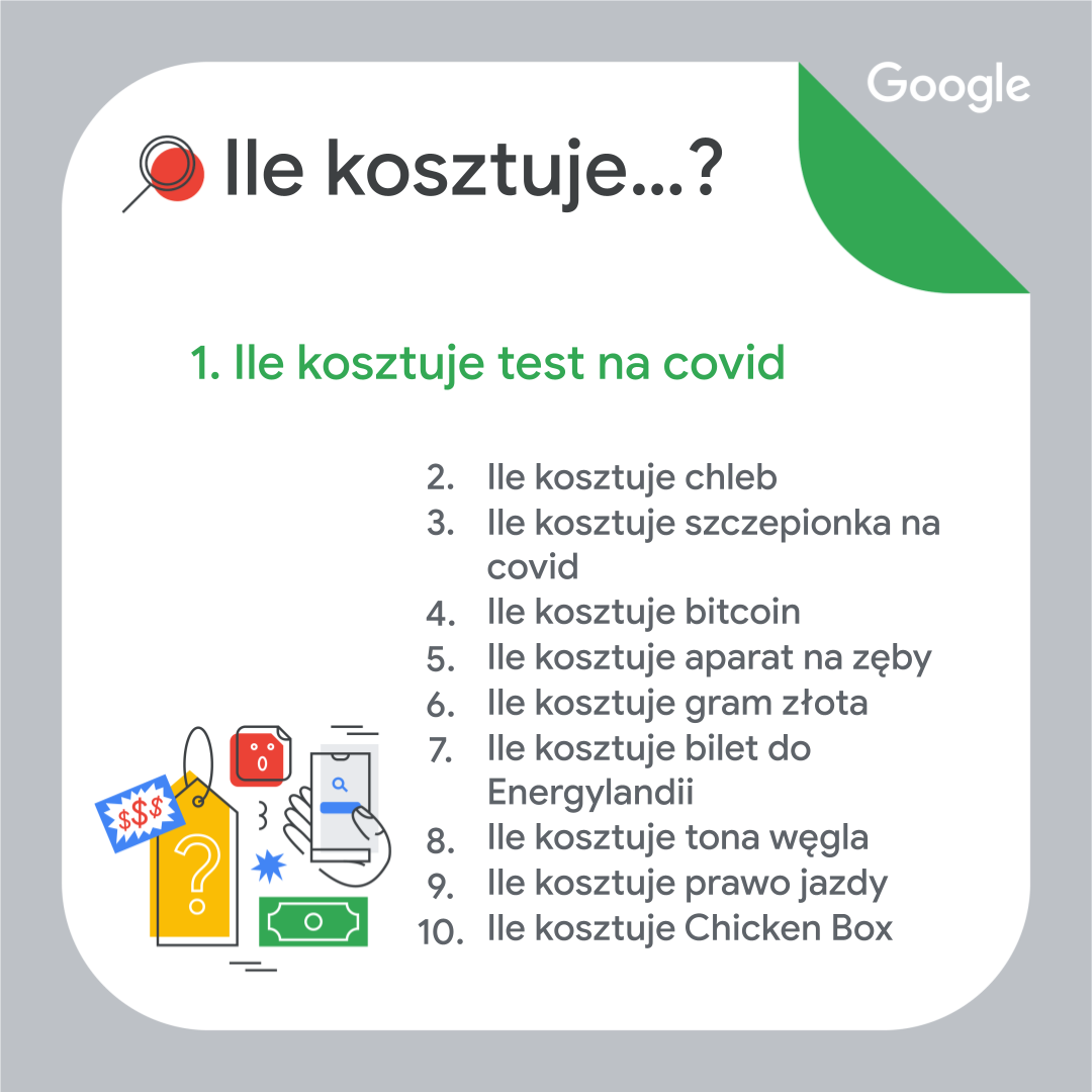W TOP 10 znaleźć można także hasła związane ze zdrowiem i szczepieniami: pacjent gov (4. miejsce) oraz loteria szczepionkowa (7. miejsce). W zestawieniu znalazły się dwa fenomeny – serialowy i marketingowy. Koreańska produkcja Squid Game podbiła internet (6. miejsce). Niewiele mniejszym zainteresowaniem cieszyły się lody Ekipy. Hasło to zamyka polskie zestawienie, ale także otwiera inne. „Gdzie można kupić lody Ekipy?” – to pytanie na pierwszym miejscu w kategorii „Gdzie…?”.