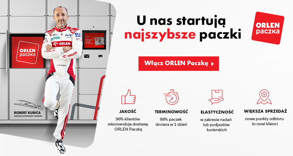 Obsługę logistyczną zamówień powierz fachowcom, tak by skupić się na rozbudowywaniu oferty sklepu, działaniach marketingowych czy rozwojowych. ORLEN Paczka dostarcza paczki szybko i sprawnie, dzięki czemu klienci wracają do e-sklepu. Już 98% zamówień odebranych z e-sklepów dostarczanych jest na następny dzień. Sieć logistyczna ORLEN Paczki dynamicznie się rozwija – pojawiają się nowe punkty odbiorczo-nadawcze, tworzone są nowe trasy kurierskie, uruchamiane kolejne centra logistyczne i punkty przeładunkowe. Wszystko po to, aby być bliżej kupujących.
