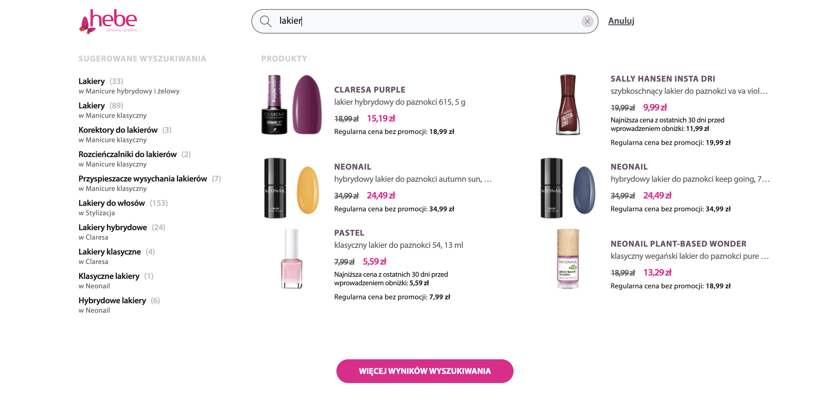 Zdj. Autosugestie w czasie wpisywania frazy w hebe.pl