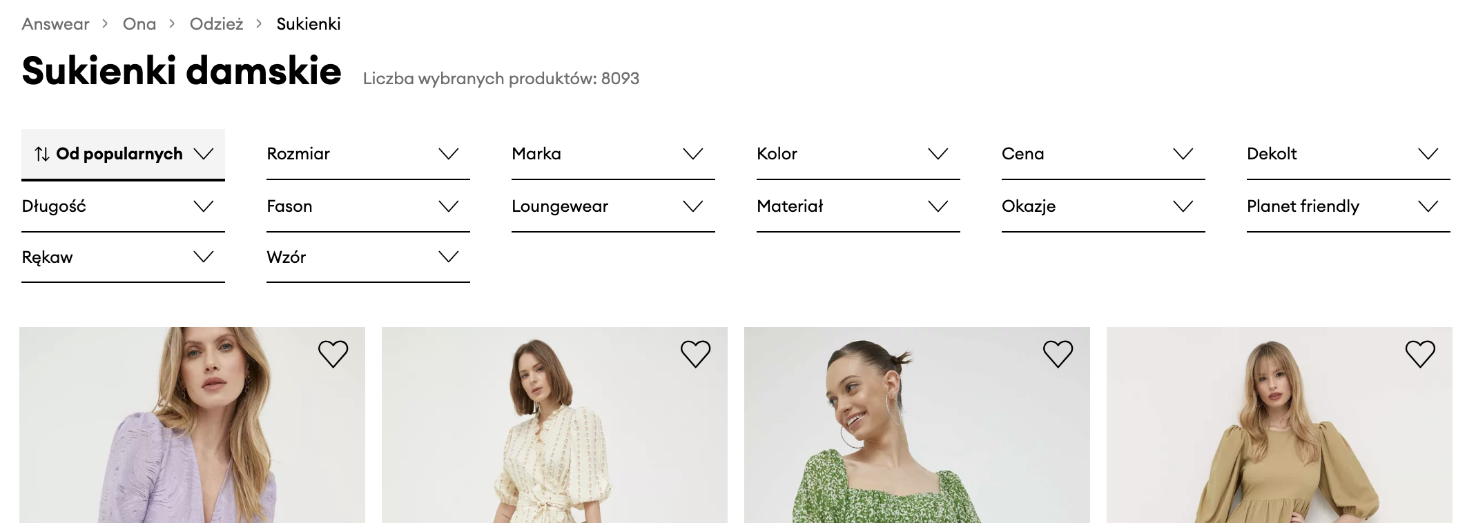 Zdj. Filtrowanie produktów w Answear.com
