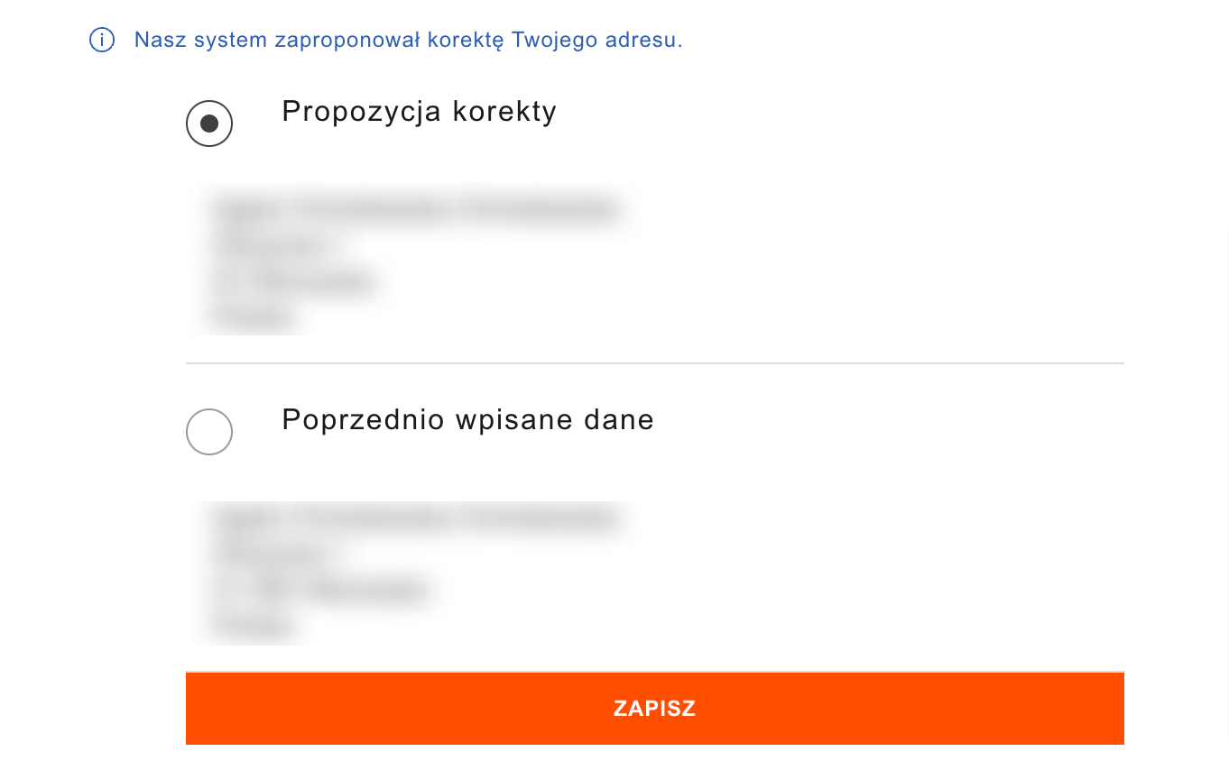 Zdj. Propozycja korekty adresu w przypadku wykrycia w nim błędów