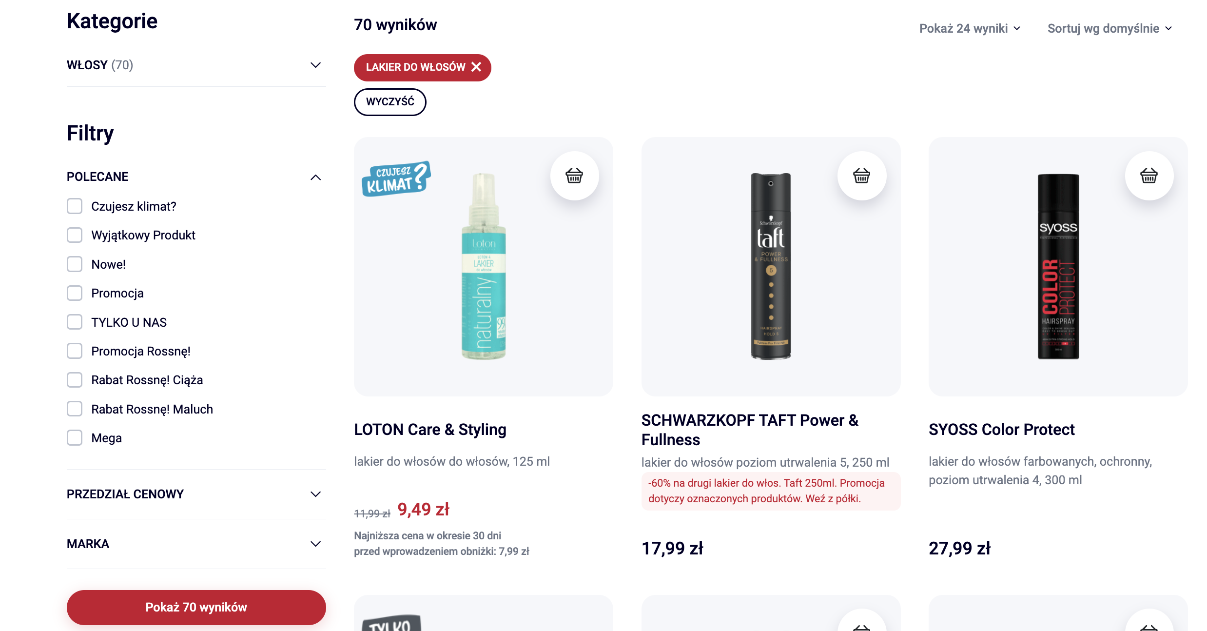 Zdj. Zawężanie wyników wyszukiwania dzięki filtrom w Rossmann.pl