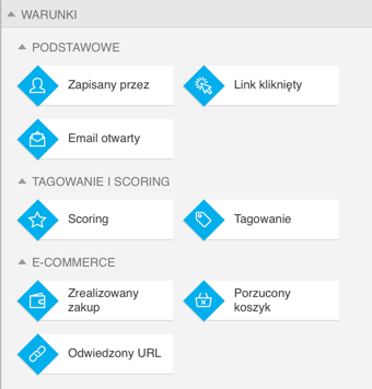 Warunki, akcje i filtry dostępne w panelu GetResponse