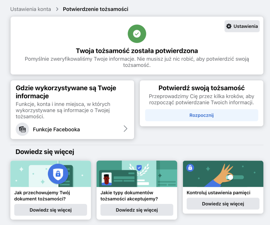 Kluczowym elementem zabezpieczenia konta na Facebooku/Meta jest poprawność danych osobowych. Nie tylko powinny być one zgodne z prawdą, ale również z tym, co widnieje w oficjalnych dokumentach tożsamości.