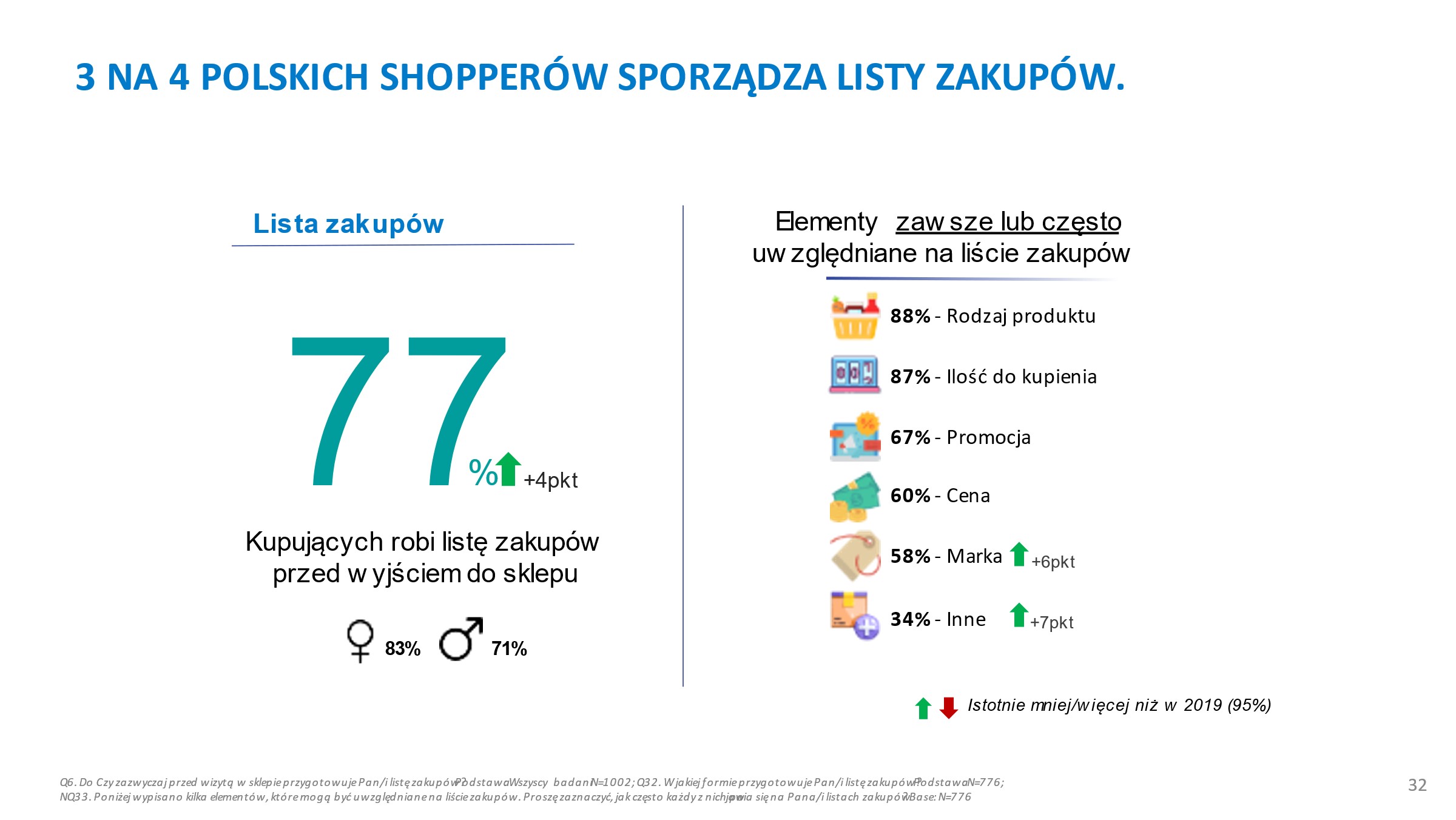 Polacy często przygotowują listę zakupów gdy wybierają się na zakupy (77%)… ale tylko 10% kurczowo się jej trzyma. Wchodząc do sklepu, kupujący szukają promocji, innowacji, przyjemności i komunikacja gra kluczową rolę.