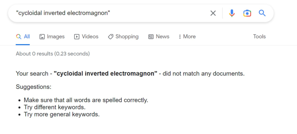 Zapytanie w Google o cykloidalny odwrócony magnes – coś, co nie istnieje