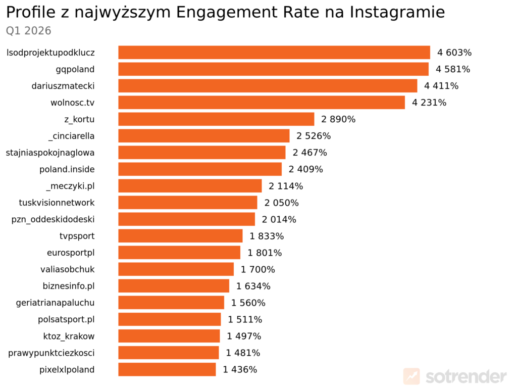 Najwyższy wskaźnik Engagament Rate w Q1 2026 r. odnotowano bowiem na profilach: