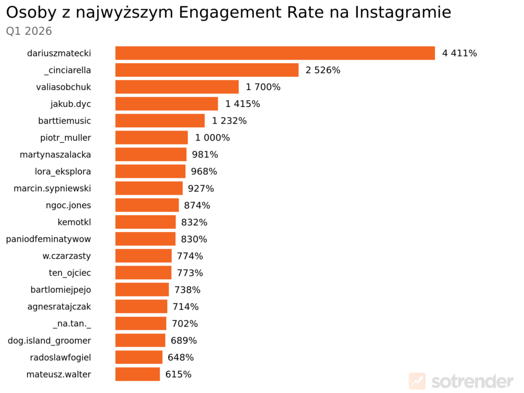 W Q1 2026 liderzy osiągali wynik Engagement Rate nawet na poziomie 4 603%.