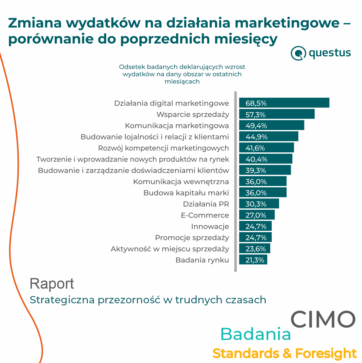 Strategiczna przezorność marketerów objawia się nie tylko wysoką świadomością inwestycji w fundamenty rozwoju organizacji (marka, relacje z klientami, wejście na nowe rynki, działania digital), ale także potrzebę zaadresowania wyzwań związanych ze zrównoważonym rozwojem w działaniach strategicznych i operacyjnych.