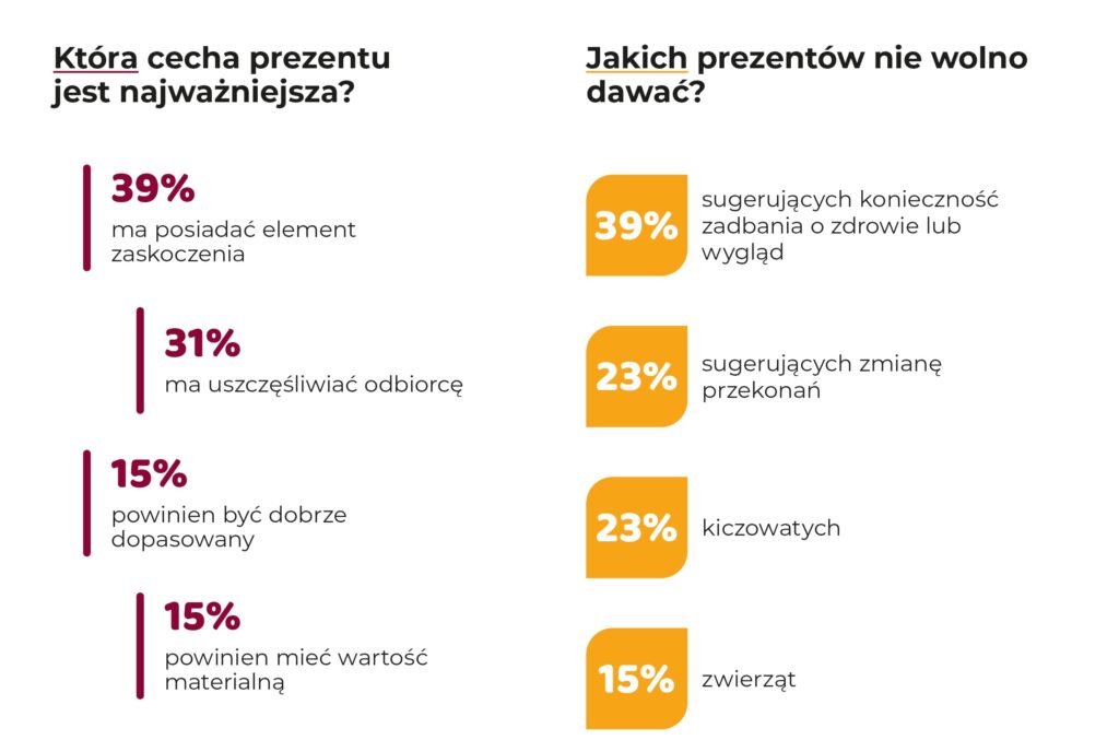 Co ważne, według ponad 1/4 ankietowanych (26%), idealny prezent powinien zaskoczyć tego, kto go otrzyma.