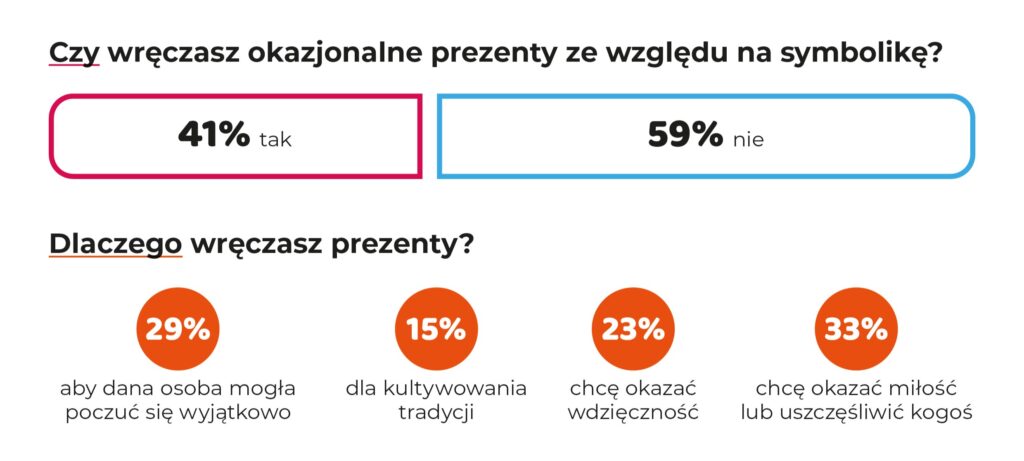 Jak pokazują badania, większości pytanych (38%), prezenty kojarzą się z miłym gestem, który ma sprawiać obdarowywanym radość. Często pod uwagę brane są również kontekst kulturowy (19%) i symbolika podarunku (14%).