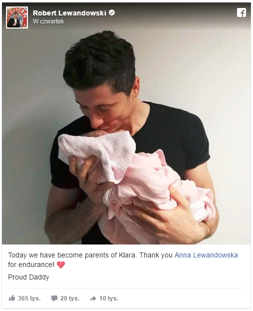 Idąc dalej tym tokiem rozumowania, można pokusić się o wycenę mediową aktywności Roberta Lewandowskiego na Facebooku. Posty publikowane na jego oficjalnej stronie w ostatnim miesiącu (od 5 kwietnia do 4 maja 2017) zyskały łącznie 1 579 662 interakcji. Zakładając niższą stawkę za interakcję na poziomie PLN 1,19, można uznać, że mediowa wartość fanpage’a Roberta Lewandowskiego wynosi 1,9 mln PLN miesięcznie.