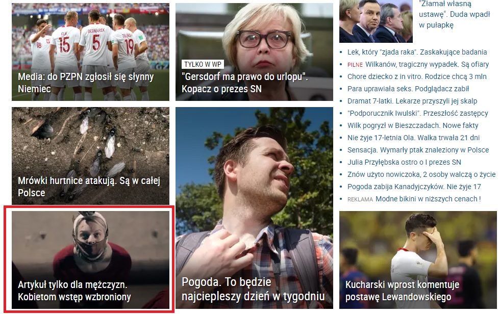 Mężczyźni zobaczą jedynie ostrzeżenie „Uwaga! Artykuł niedostępny dla kobiet. Upewnij się, że w twoim otoczeniu żadna kobieta nie ma dostępu do treści”, po czym dalej mogą kontynuować lekturę.