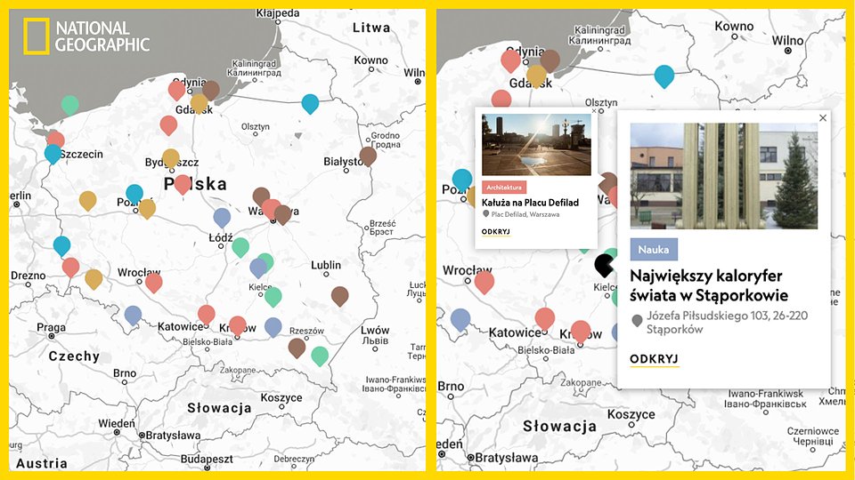 Kanał National Geographic Polska, przenoszący widzów do świata niezwykłych odkryć, w ramach kampanii #JestTyleDoOdkrycia pragnie wzmacniać pozytywne trendy zaspokajania lokalnej ciekawości poprzez eksplorowanie swojej najbliższej okolicy. Z tą myślą powstała interaktywna mapa Polski, na której oznaczono wybrane przez ekspertów, odkrywców i podróżników lokalizacje, stanowiące często ukryte atrakcje spoza utartych szlaków turystycznych na terenie naszego kraju.