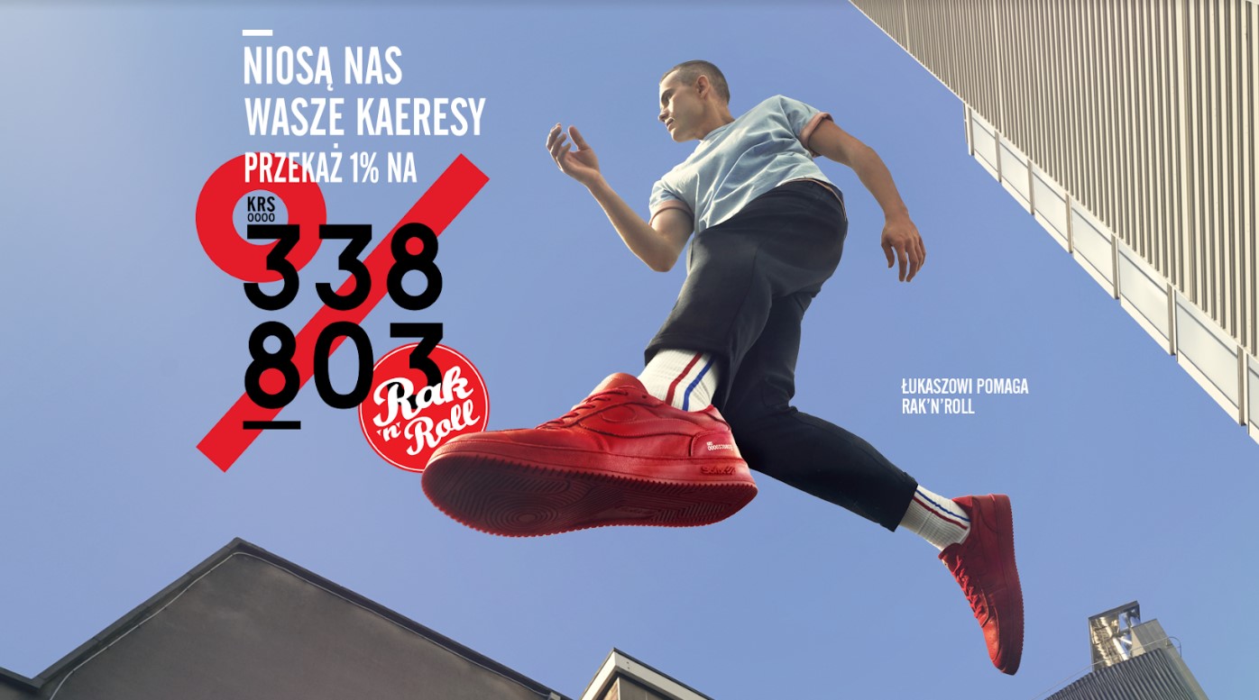 Z każdym przebytym krokiem po ulicy, z każdym udostępnionym postem w mediach społecznościowych, przyciągające wzrok czerwone buty mają zachęcać do przekazania 1% podatku Fundacji, która od lat pomaga pisać inspirujące historie swoich podopiecznych. Niektóre z nich zostaną wydrukowane na owijkach KAERESÓW, by przypominać tym, którzy będą je nosić, że promują coś bardzo ważnego – ideę pomocy, a nie tylko fajną markę. Historie Gosi, Łukasza, Ani i Marty są różne – łączy je rak, determinacja podczas pokonywania przeszkód oraz to, że w czasie choroby niosą ich KAERESY.