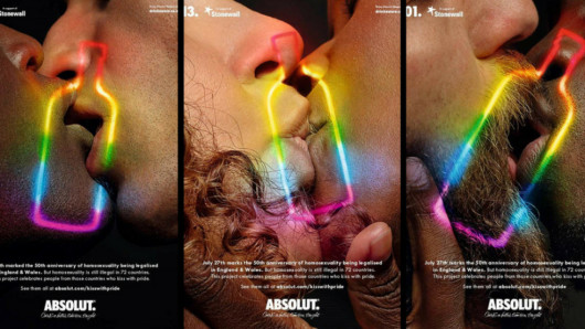Innym przykładem działań polegających na akceptacji homoseksualizmu jest kampania marki Absolut. Z okazji 50. rocznicy zakazu dyskryminowania miłości homoseksualnej w Anglii, marka stworzyła kampanię OOH, która miała na celu podniesienie świadomości o prawach homoseksualistów.