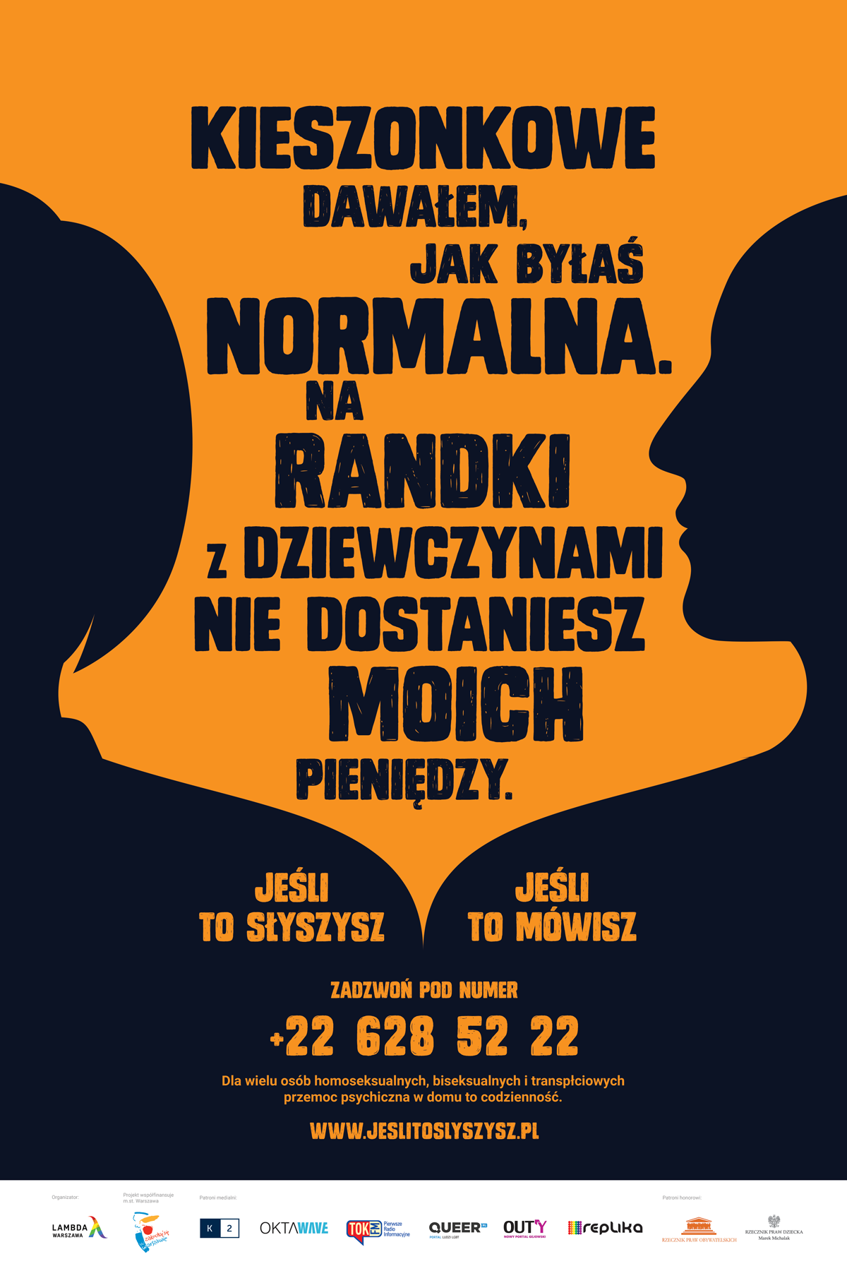 „Jeśli to słyszysz. Jeśli to mówisz” to pierwsza kampania społeczna w Polsce, która dotyczy zjawiska przemocy domowej wobec społeczności LGBT.