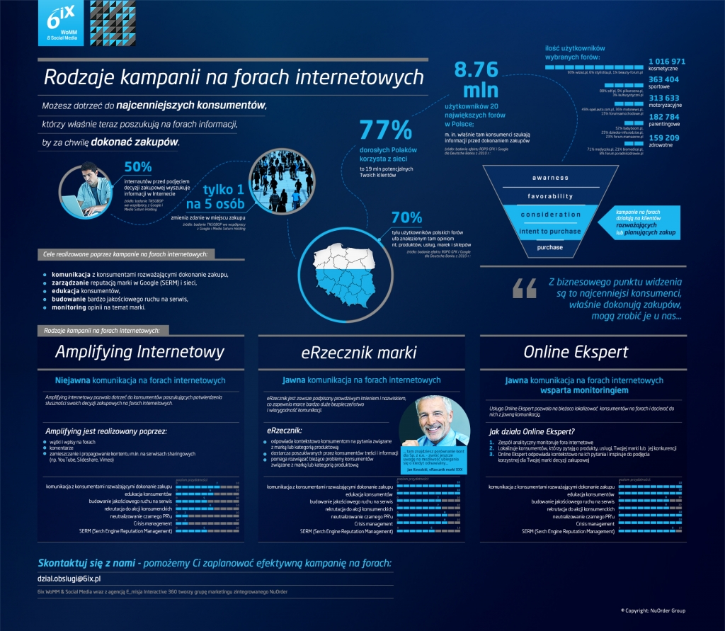 Agencja 6ix WoMM & Social Media przygotowała infografikę porównującą trzy dostępne rodzaje kampanii na forach.