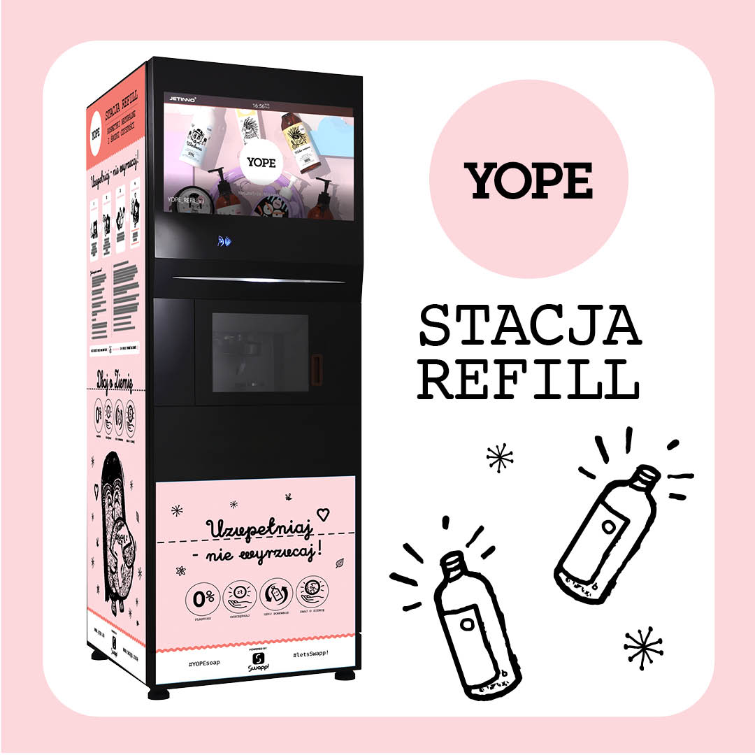 Jak to dokładnie działa? Podobnie jak automat z kawą. Wystarczy umieścić pustą 500 ml butelkę w wyznaczonym miejscu i na ekranie urządzenia wybrać produkt, którym chcemy ją napełnić. Jeśli jednak nie posiadamy żadnej butelki ze sobą, na miejscu można kupić lub wypożyczyć butelkę wielokrotnego użytku. Ponadto klienci zyskają możliwości zakupu kosmetyków Yope 15% taniej, z uwagi na fakt, że płacą wyłącznie za produkt, a nie za opakowanie.