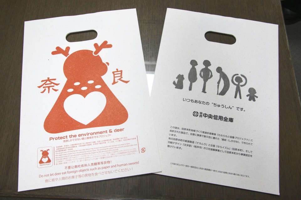 W odpowiedzi na ten problem kilka lokalnych firm postanowiło stworzyć torebkę przyjazną jeleniom. Jest ona wykonana z pulpy pochodzącej z recyklingu opakowań mleka i otrębów ryżowych – dzięki zastosowaniu tych składników zwierzęta mogą je bezpiecznie jeść. Opakowania łatwiej też rozpuszczają się w wodzie i są mniej trwałe niż zwykły papier.