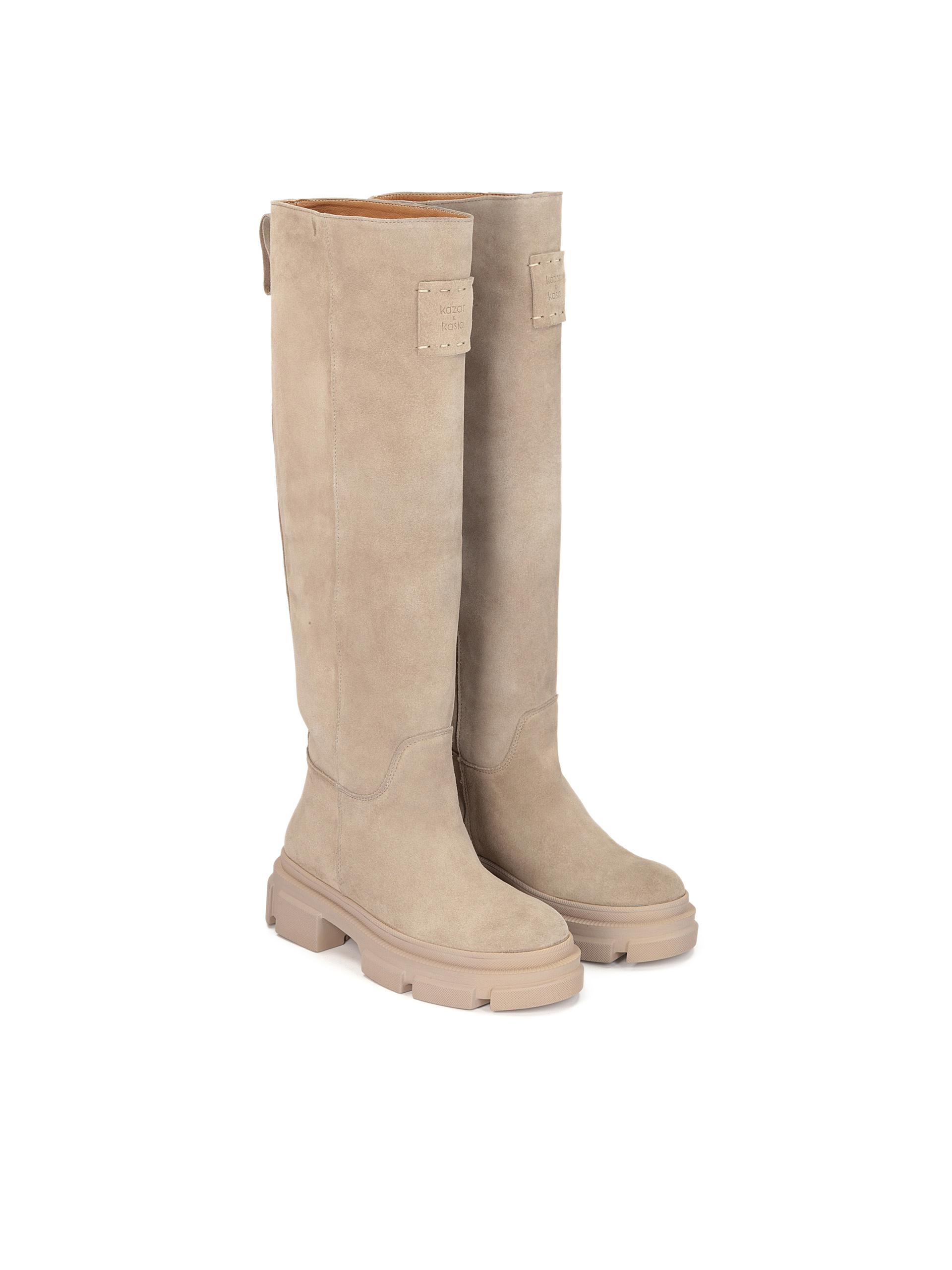 W kolekcji pojawiły się także spektakularne fasony kozaków, zarówno na szpilce, jak i na płaskim, masywnym spodzie. Niekwestionowanym hitem w tym sezonie są „slouchy boots”, czyli model z luźnymi, marszczonymi cholewkami i fantazyjnym wiązaniem na wysokości kolan.