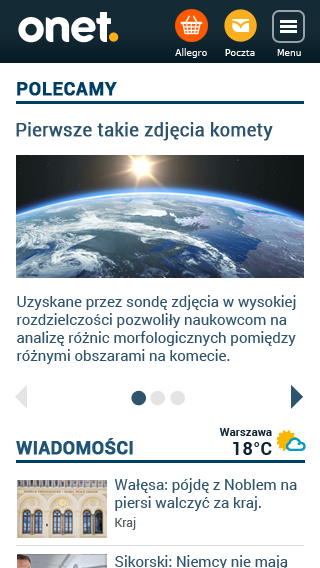 Od teraz każdy z czytelników Onetu może wybrać na stronie głównej treści z interesującej go kategorii tematycznych tj. Sport, Biznes czy Wiadomości, tak by każdego dnia otrzymywać sprofilowaną dawkę informacji. Wszystko to wyświetli się dwa razy szybciej niż dotychczas, w technologii RWD, niezależnie od systemu czy rozdzielczości.