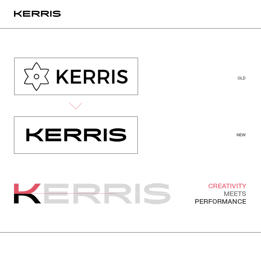 Agencja KERRIS zmieniła całą swoją oprawę graficzną w tym stronę internetową oraz logo. Jej nowa komunikacja wizualna bazuje na 4 głównych motywach graficznych: rozmytych fotografiach, zdjęciach mikroskopowych wody, białym horyzontalnym gridzie oraz płaskich aplach kolorów. Rozmyte zdjęcia odnoszą się do procesu krystalizowania się idei – od niewyraźnego obrazu do figuratywności. Morfownie kolorów, symbolizujące kreatywność, przełamane zostało surowym gridem oraz mocną białą typografią – symbolizującymi świat liczb, wyników i danych, czyli wszystkim tym, co jest związane z performance marketingiem.