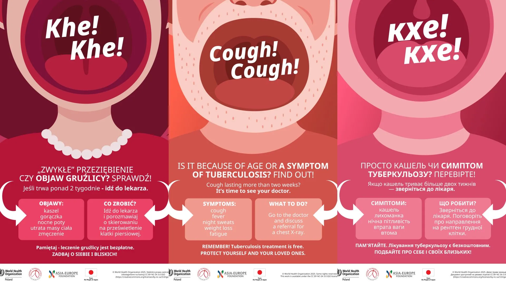 Kampania WHO i Polskiego Towarzystwa Chorób Płuc nie tylko zwraca uwagę na gruźlicę, ale też pokazuje, jak duże znaczenie w komunikacji społecznej mają prostota, uniwersalność i odwaga twórcza. „Khe! Khe!” – dwusylabowy dźwięk kaszlu – stał się centralnym motywem narracji kampanii.