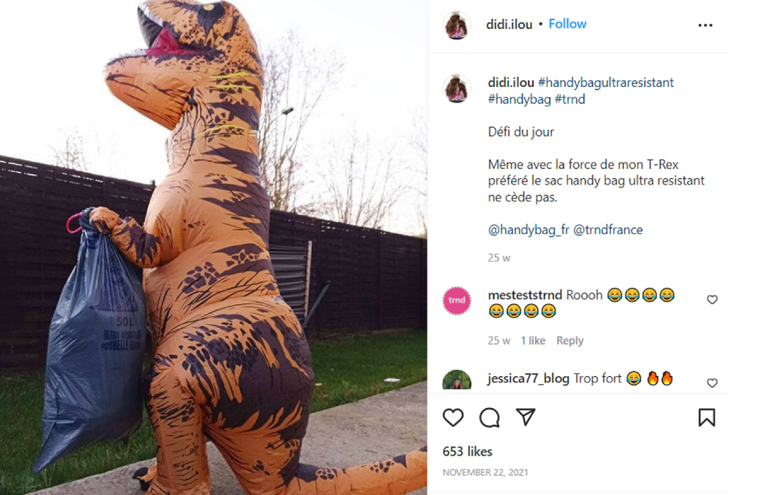 W trakcie trwania kampanii wyselekcjonowani uczestnicy publikowali kreatywne treści w mediach społecznościowych pod hasztagiem: #HandyBagUltraResistant, zabawiając i edukując społeczność na temat właściwości wytrzymałych worków.