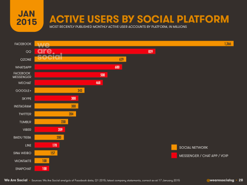 Choć Facebook cieszy się cały czas największą liczbą użytkowników, dużą popularność zdobywają również inne platformy. Dzieję się tak głównie z dwóch powodów. Po pierwsze, firmy, w związku z niskim zasięgiem organicznym i wzrostem kosztów na Facebooku, szukają alternatywnych serwisów. Po drugie z Facebooka odchodzą osoby młode, które nie chcą być tam, gdzie ich rodzice i dlatego wybierają dla siebie inne media społecznościowe. Dobrym przykładem jest tutaj chociażby Snapchat czy Whatsapp.