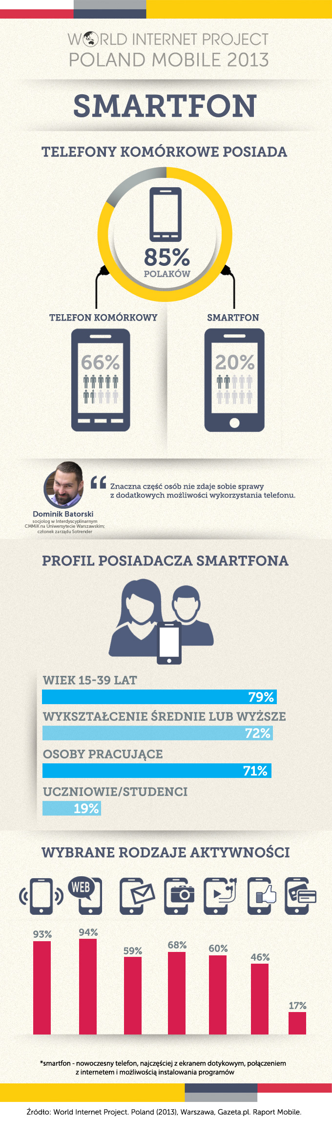 – Grupa użytkowników bardzo mobilnych, którzy intensywnie korzystają ze smartfonów i mobilnego dostępu do internetu, jest wciąż nieliczna. Z drugiej strony, choć urządzenia i ich możliwości zmieniają się szybciej niż motywacje i umiejętności potrzebne do ich wykorzystania, to jednak nie ma wątpliwości, że wykorzystanie bardziej zaawansowanych funkcji nowoczesnych telefonów będzie się stopniowo upowszechniać – dodaje dr Dominik Batorski, członek zarządu Sotrender.