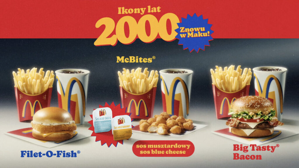 A McDonald’s wskrzesza hity z lat 2000: Big Tasty Bacon czy Filet-O-Fish – grając wprost na smakowej nostalgii dzisiejszych 30-40-latków, a młodszym dając możliwość poczuć się jak „kiedyś”.
