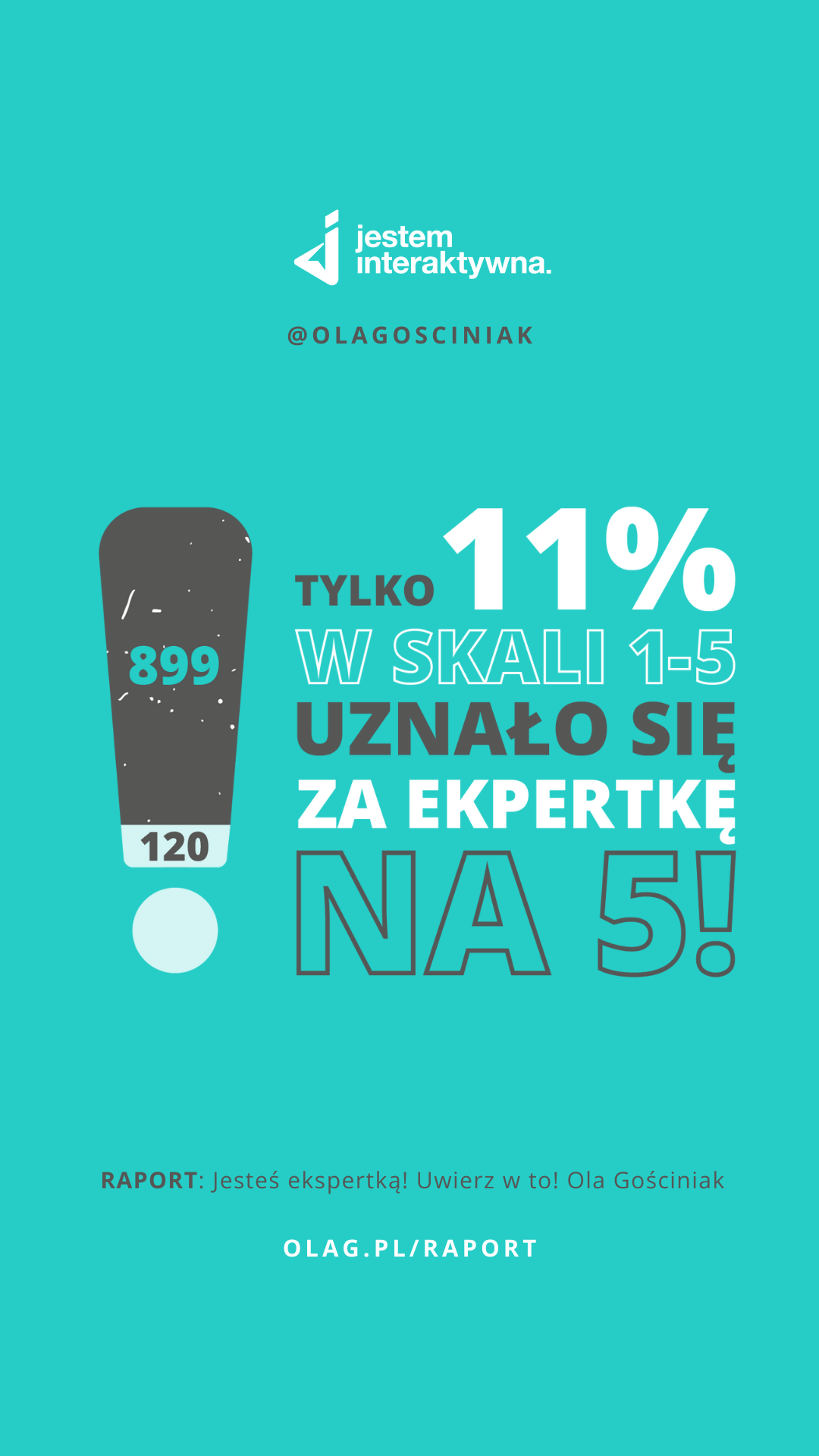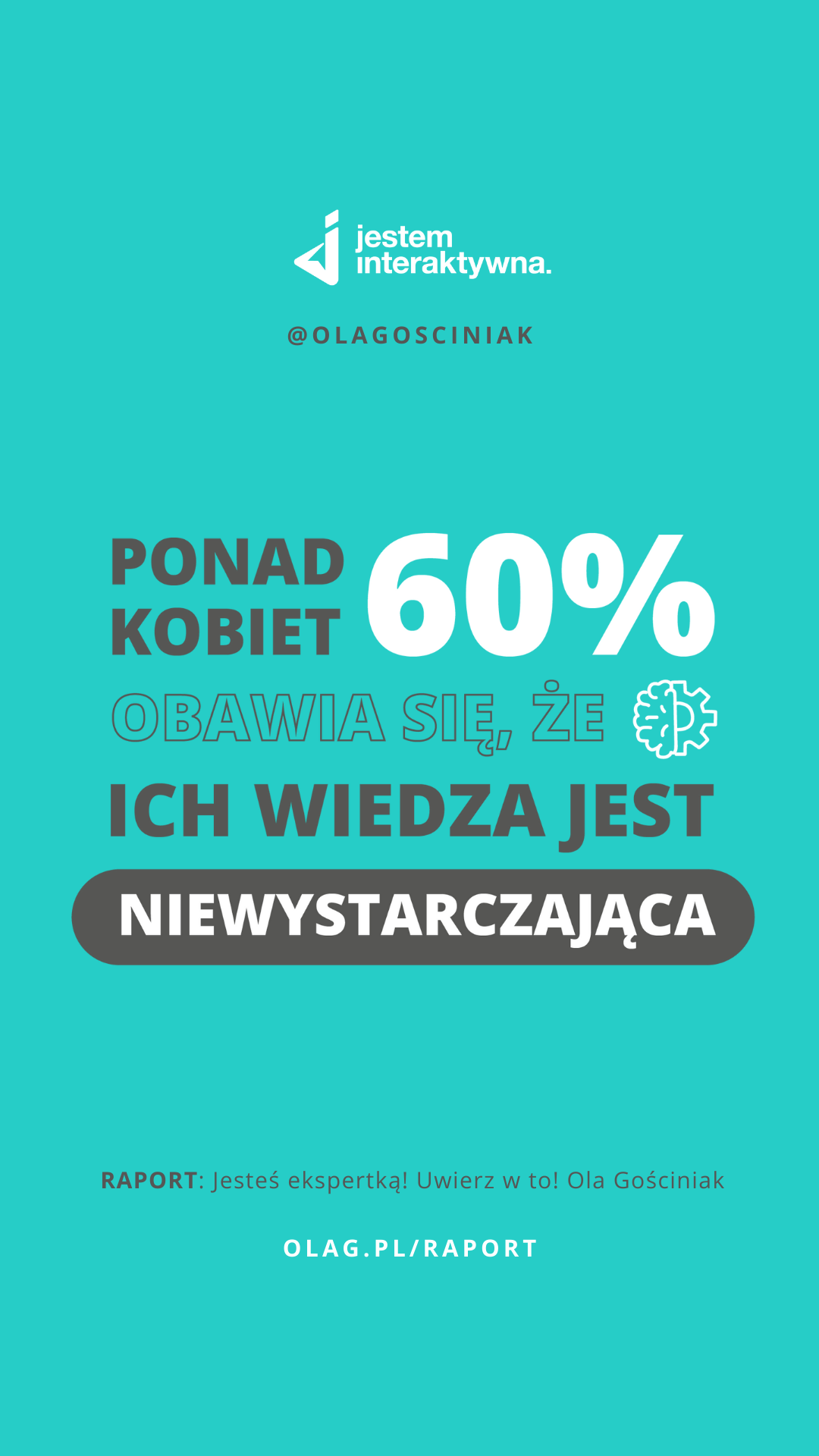 Ola Gościniak znana jako Jestem Interaktywna, od lat wspiera kobiety, w zarabianiu na dzieleniu się wiedzą. Jest ich mentorką i motywatorką uczy jak zarabiać na wiedzy. Zauważyła pewne wątpliwości wśród kobiet, różne obawy. Postanowiła to sprawdzić, tworząc badanie, z którego powstał Raport „Jesteś ekspertką! Uwierz w to!”.