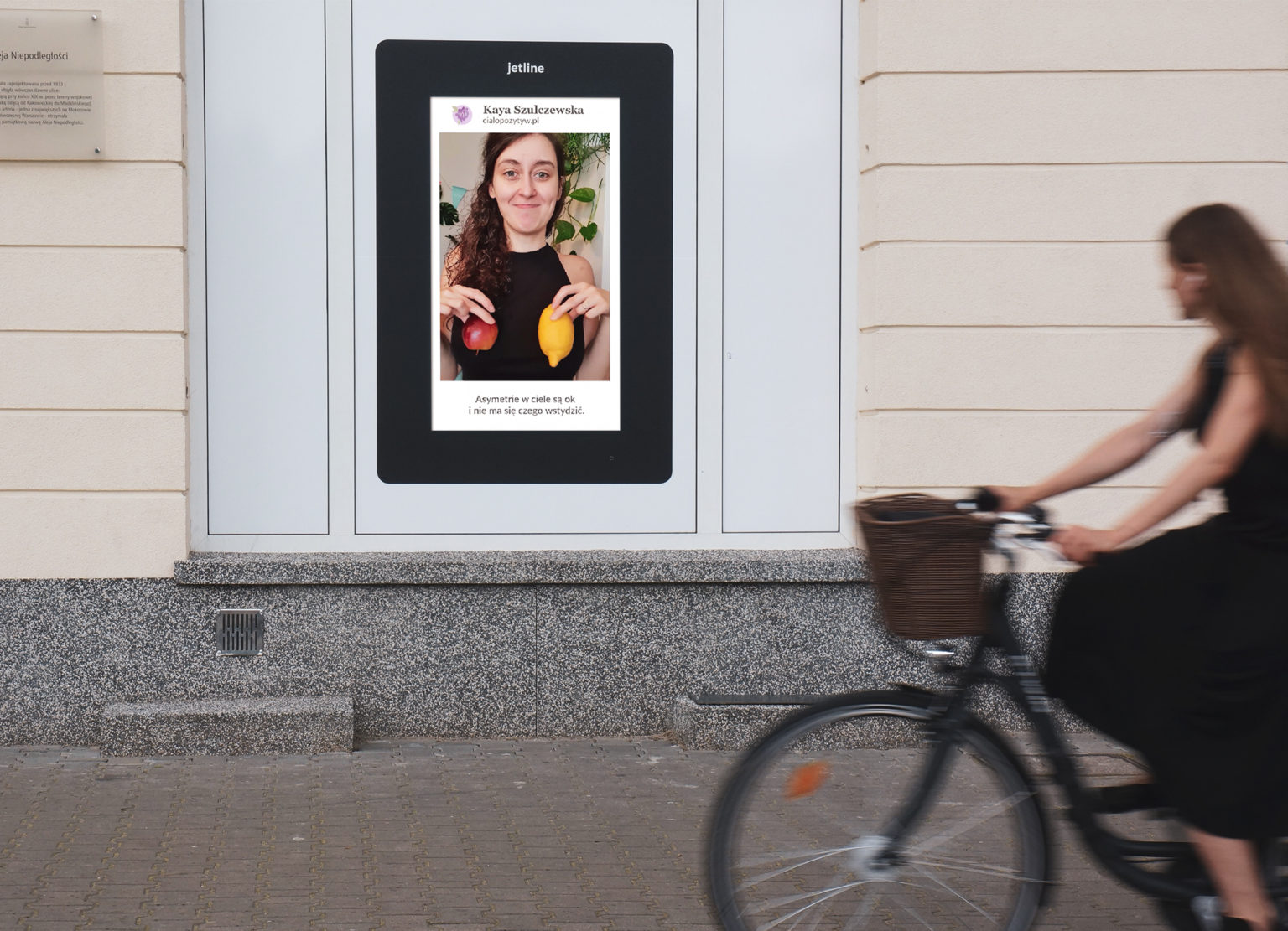 Kaya Szulczewska: „Zdecydowałam się na udział w akcji, bo chciałabym promować ciałopozytywne podejście do życia. Ciałopozytywne, czyli takie które uczy nas szacunku do ciała, niezależnie czy chodzi o nasze ciało, czy cudze. Kiedy ponad 2 lata temu zaczynałam moją działalność w Internecie, marzyłam, że kiedyś wyjdę z tym tematem na ulicę. Chcę edukować i pomagać ludziom tworzyć lepszą relację z ciałem na szeroką skalę, chcę uczyć samoakceptacji i tolerancji dla ciał innych. Myślę, że ciałopozytywność głównie trafia do kobiet, bo to na kobietach jest większa presja na idealny wygląd i na dążenie do kanonu. Jednak wielu mężczyzn wyciąga z tego naukę na siebie, bo i oni miewają problemy z akceptacją swojego ciała. Ciałopozytywność to nauka solidarności, słuchania i otwartości na historie jakie niesie każde ciało. To nauka empatii , współczucia i mądrej troski, przepełnionej czułością do siebie i innych”.